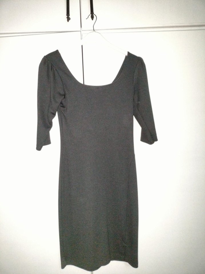 V yakalı, kısa kollu, siyah midi elbise, minimal ve gotik tarzıyla şık ve rahat bir görünüm sunar.