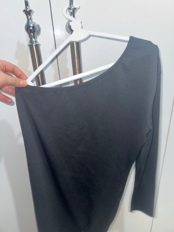 V Yakalı Siyah tek kol elbise