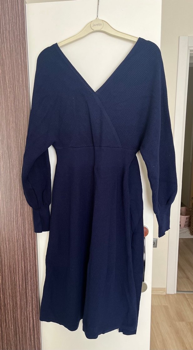 V Yakalı Triko Elbise