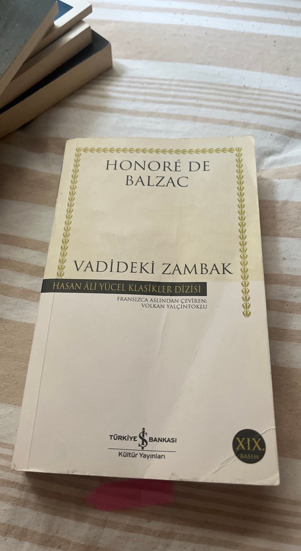 Honoré de Balzac'ın Fransızcadan çevrilen 'Vadideki Zambak' adlı klasik romanı. Hasan Ali Yücel Klasikler Dizisi'nden, Türkiye İş Bankası Kültür Yayınları tarafından basılmış.