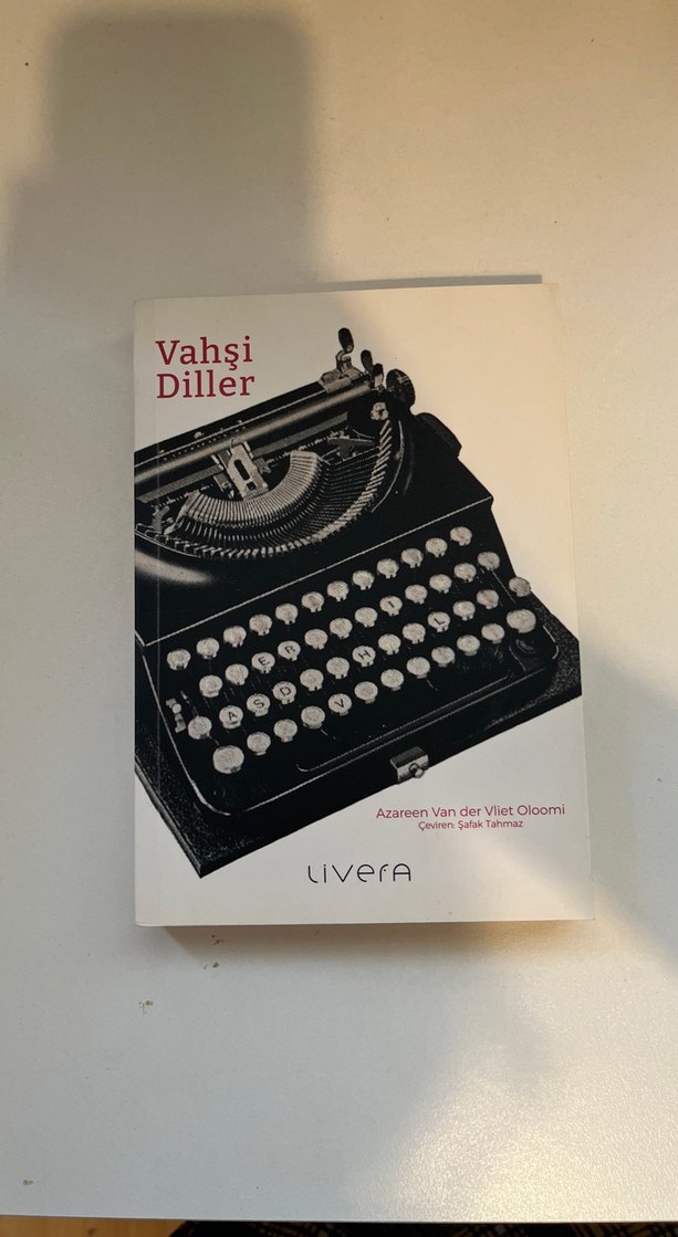 Azareen Van der Vliet Oloomi'nin "Vahşi Diller" romanı, Livera yayınlarından. Kapakta eski tip daktilo görünüyor.