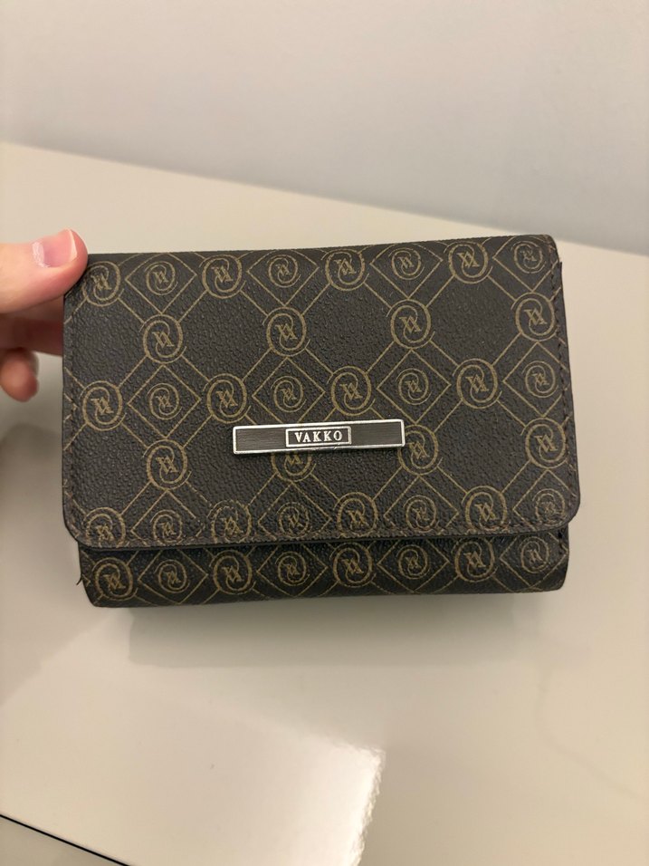 Vakko marka, baskılı desenli ve tokalı koyu kahverengi deri kadın cüzdanı, günlük kullanıma uygundur. Sadece fermuarı bozuldu ben yeni cüzdanlar aldığım için satıyorum.