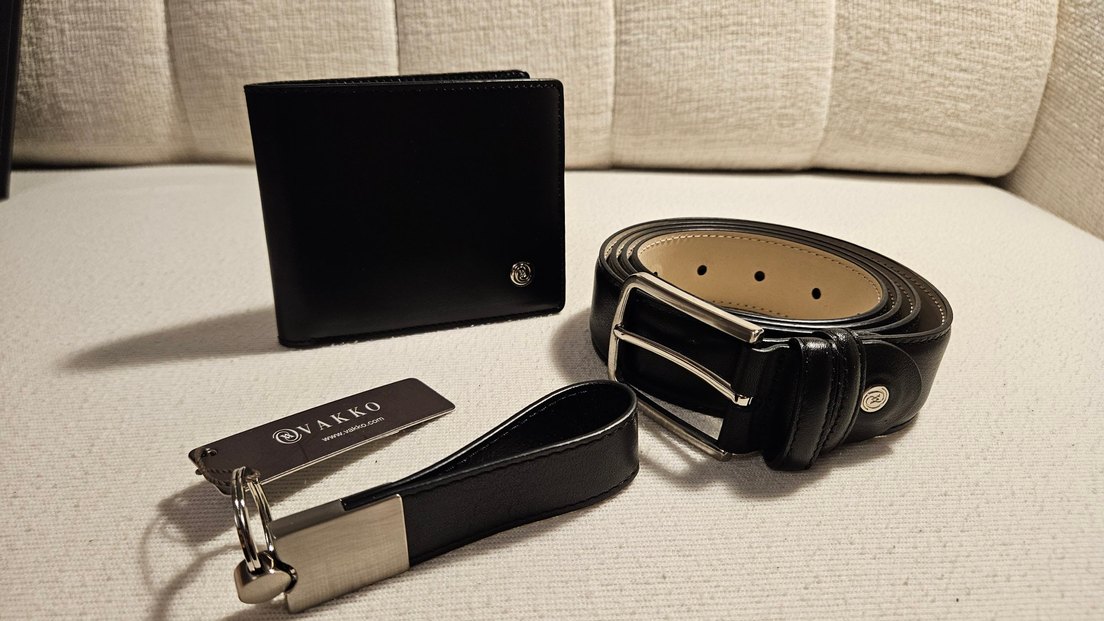 Portföy takımı, Yüzde yüz deri materyalden üretilen ve marka yazı detaylı özel bir kutu içinde yer alan siyah renkli Vakko hediye seti, içeriğinde cüzdan, kemer, anahtarlık bulunduruyor. Mağazada 8 bin,sıfır,orjinal