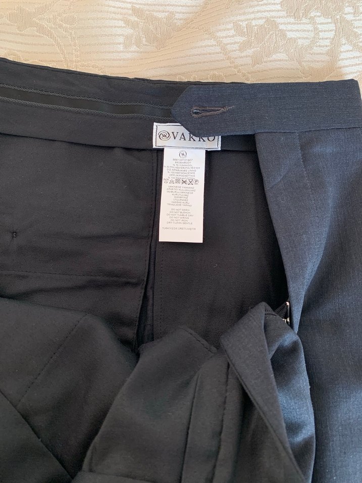 Vakko mağazasından alındı. Yünlü kumaş pantolon. Kullanılmadı. 48 Beden. Boy 102 cm. Antrasite yakın bir lacivert renkte.