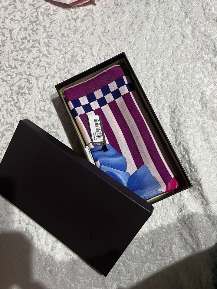 Modern tarzda, canlı mor tonlarında, fermuarlı ve ipeksi dokulu kadın fuları. Parisli şıklığını yansıtan avant-garde tasarım.