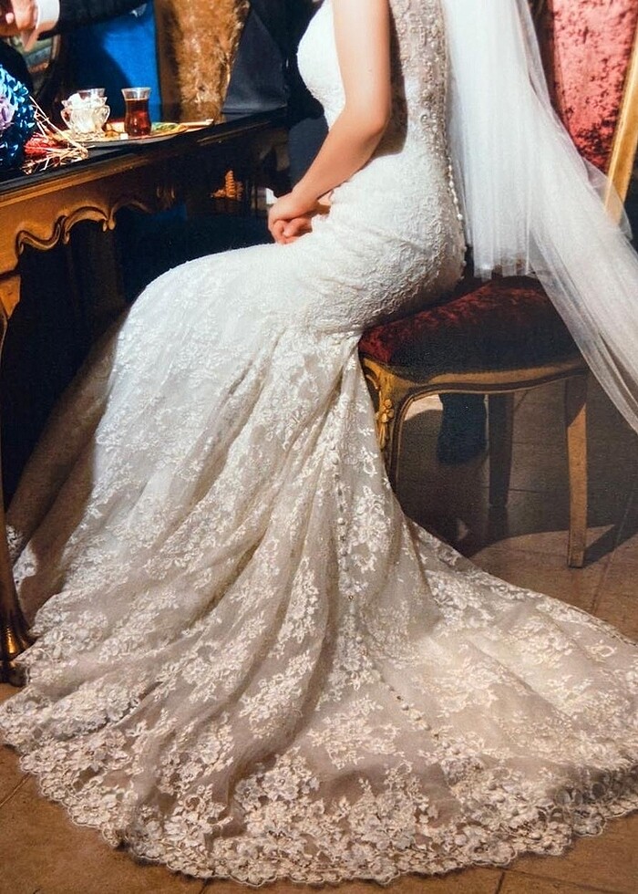 Vakko Gelinlik 34 beden için uygun, kırık beyaz, sırtı taş detaylı. Düğün sonrası tüm temizliği yapıldı.