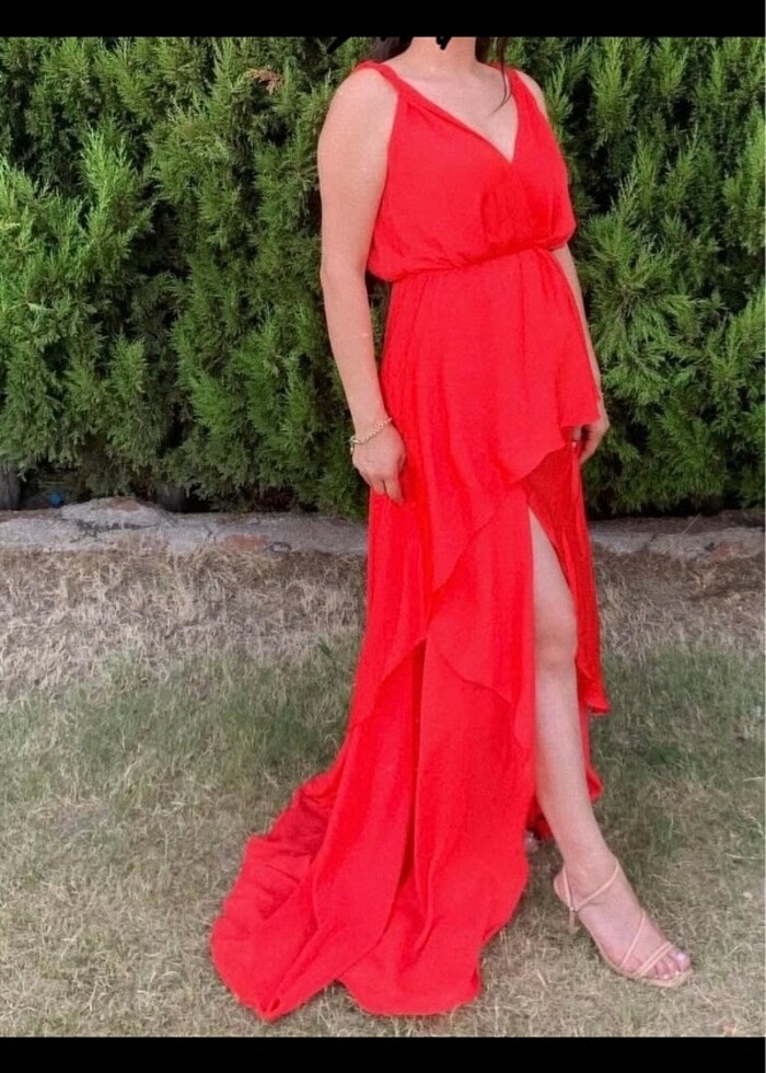 Ürünü bir kez giydim . Önü kısa arkası uzun . Eteğin iç kosmında bir yırtık var giyildiğinde görünmüyor Orijinal vakko 38 beden İpek #vakko#ipek#elbise#abiye#mezuniyet#parti