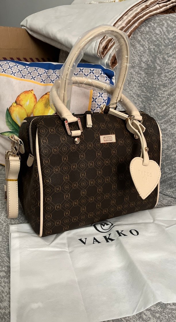 Vakko'nun koyu kahverengi deri çantası, baskılı desen ve tokalı detaylarla modern klasik şıklığı Paris tarzıyla buluşturuyor.