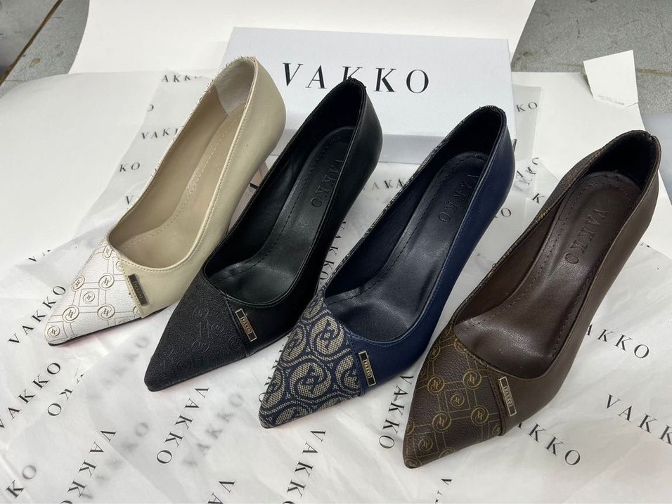 Vakko kahverengi yılan desenli stiletto, tokalı detaylı, modern klasik tarzda, ofis için uygun.