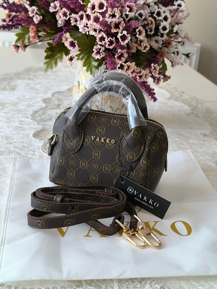 Vakko Kahverengi Deri Kadın Çanta 10x15 mini-3 kademeli aski