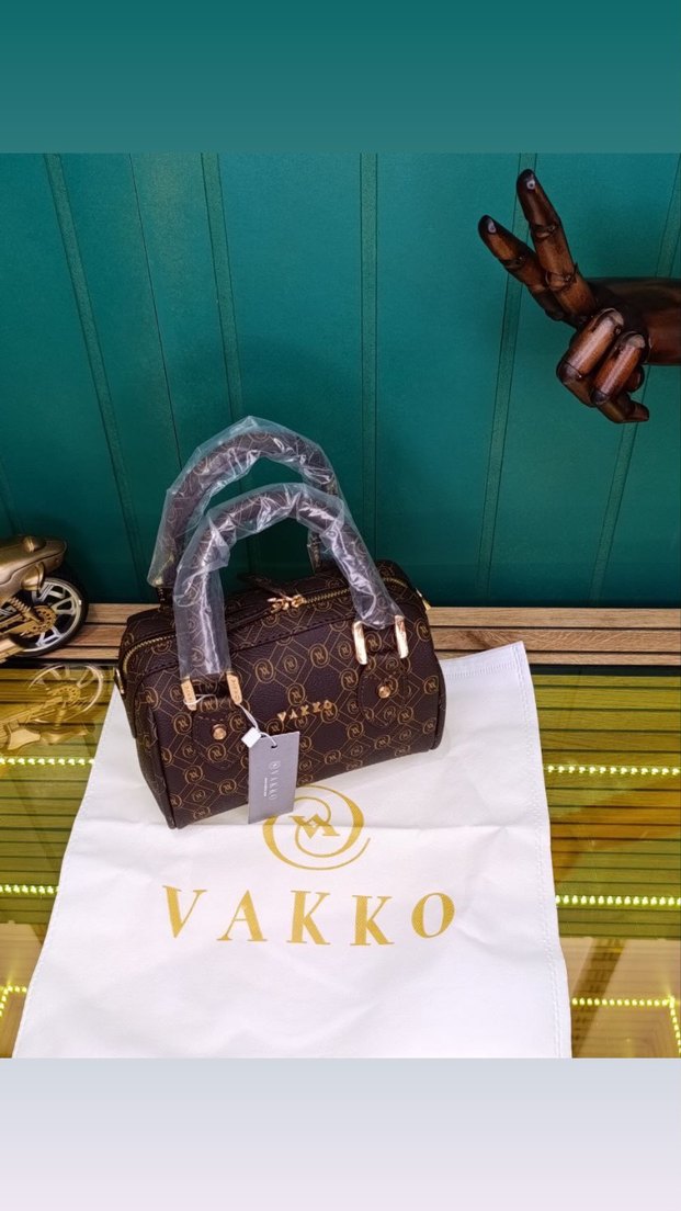 Kahverengi deri kadın çanta, parlak baskılı desen ve tokalı detaylara sahip, klasik Paris şıklığını yansıtıyor. Vakko markalı, modern klasik tarzda.