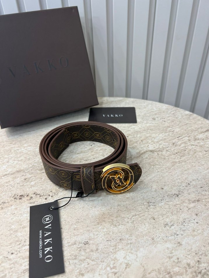 Vakko marka kahverengi deri kemer, bel detaylı ve altın renk toka ile klasik sokak tarzına uygun şık bir parçadır.