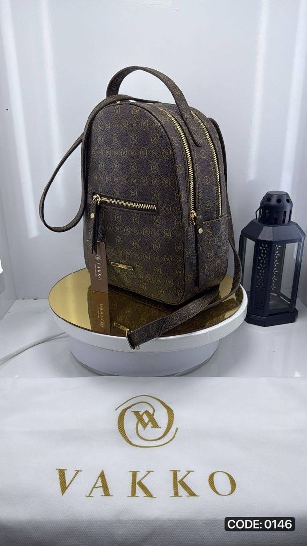 Parlak kahverengi deri sırt çantası, baskılı desen ve tokalı detaylarla modern klasik Paris tarzını yansıtır. A+++ A kalite Bby72 0146