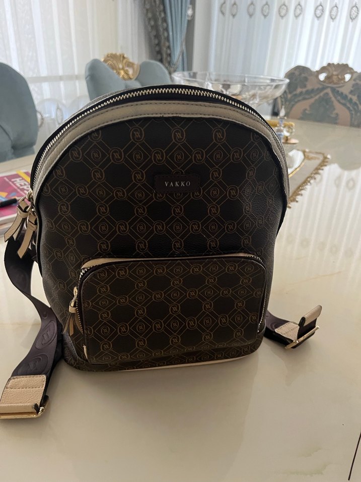 Koyu kahverengi deri sırt çantası, baskılı deseni ve tokalı kayışlarıyla klasik zarafeti Paris sokak stiline taşıyor. Günlük kullanım için uygun. Hıc bır sorunu yoktur