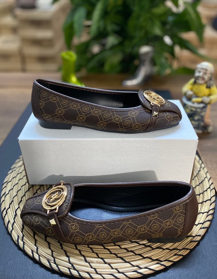 Vakko Kahverengi Desenli Tokalı Kadın Babet