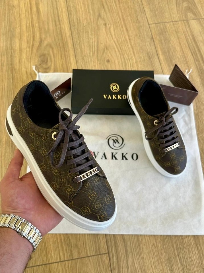 Vakko markalı kahverengi, baskılı desenli kadın spor ayakkabısı. Bir kere giyildi hiç bir sorunu yok fazlalıktan satışta