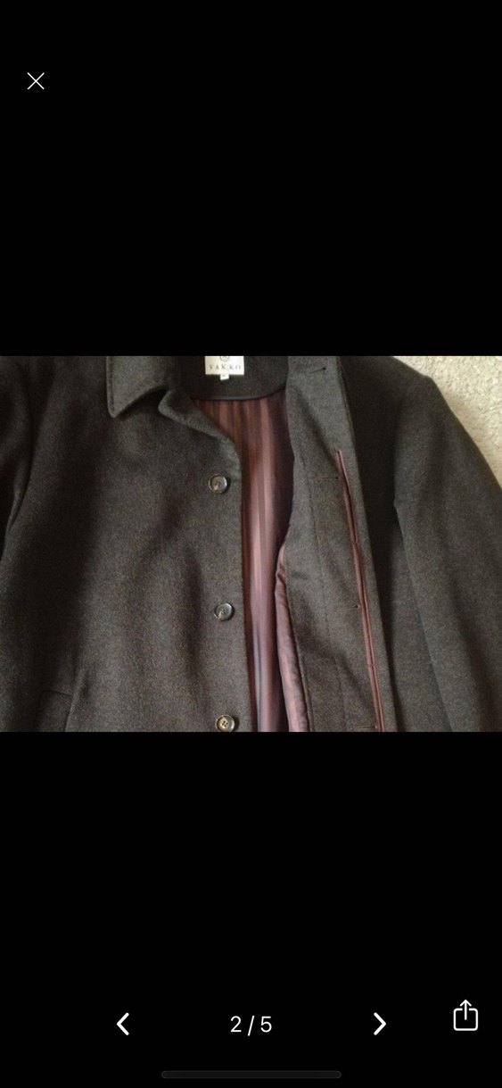 Düğmeli, yün kumaştan yapılmış, kahverengi erkek kaban. Notlu yakalı, normal boy ve regular fit. İş ve günlük kullanıma uygun, uzun kollu, desensiz model.