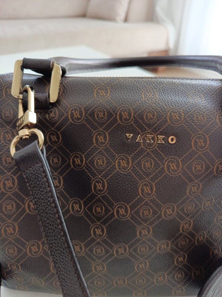 VAKKO Klasik Desenli Kahverengi Deri Çanta