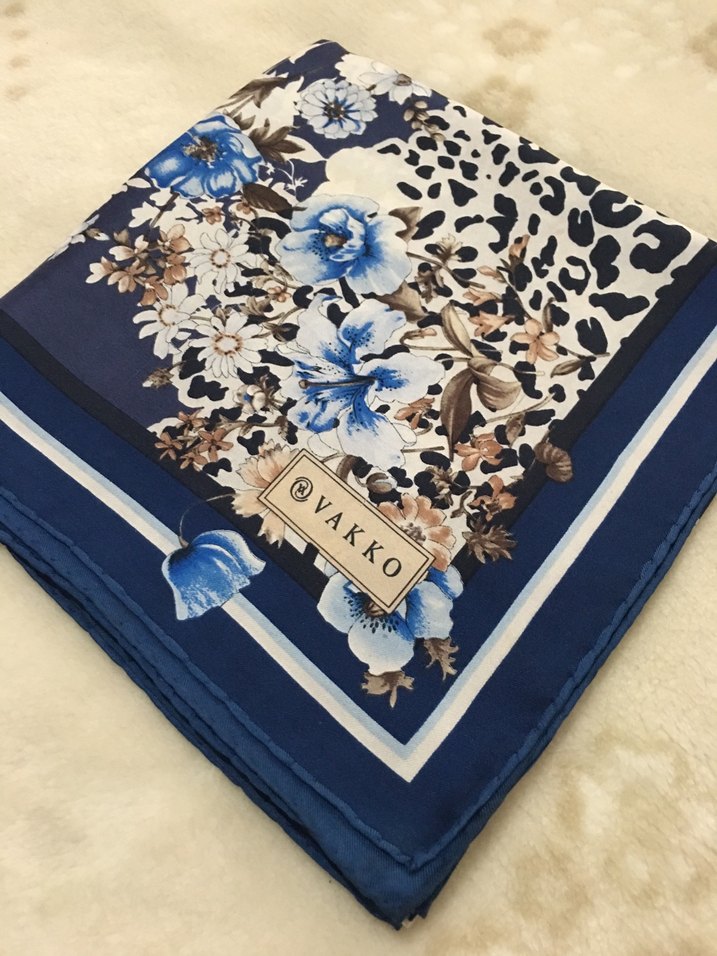 Vakko marka, koyu lacivert tabanlı, çiçek ve dantel detaylı kadın fular. Yumuşak sentetik kumaştan, bohem ve retro tarzlara uygun.Vakko tivil ipek eşarp az ve temiz kullanılmıştır son iki fotoğrafta sorunu belirtilmiştir küçük bir leke ve iğne izi mevcut