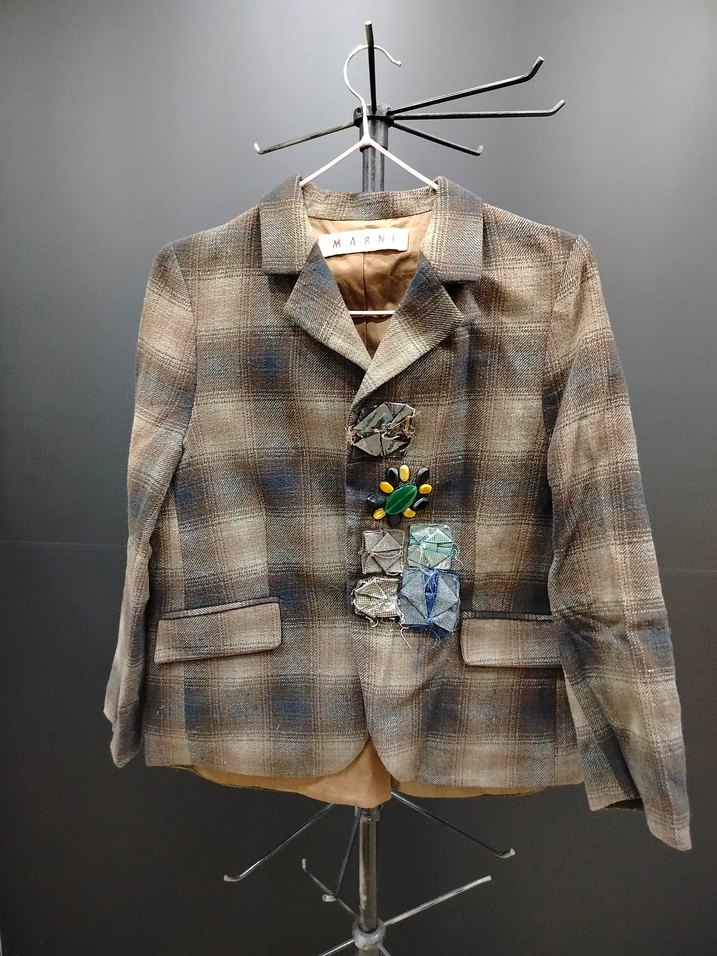 özel kreasyondur..Notched yakalı, düğmeli, bej ekoseli kadın ceket. Regular kesim, midi boy, günlük kullanıma uygun avant-garde tarzda tasarlanmıştır. Marni orijinal, özel appliqué detaylı blazer, defo yok, çok az kullanıldı beden 40 ama en fazla 38 bedene kadar giyilebilir kalıbı dardır