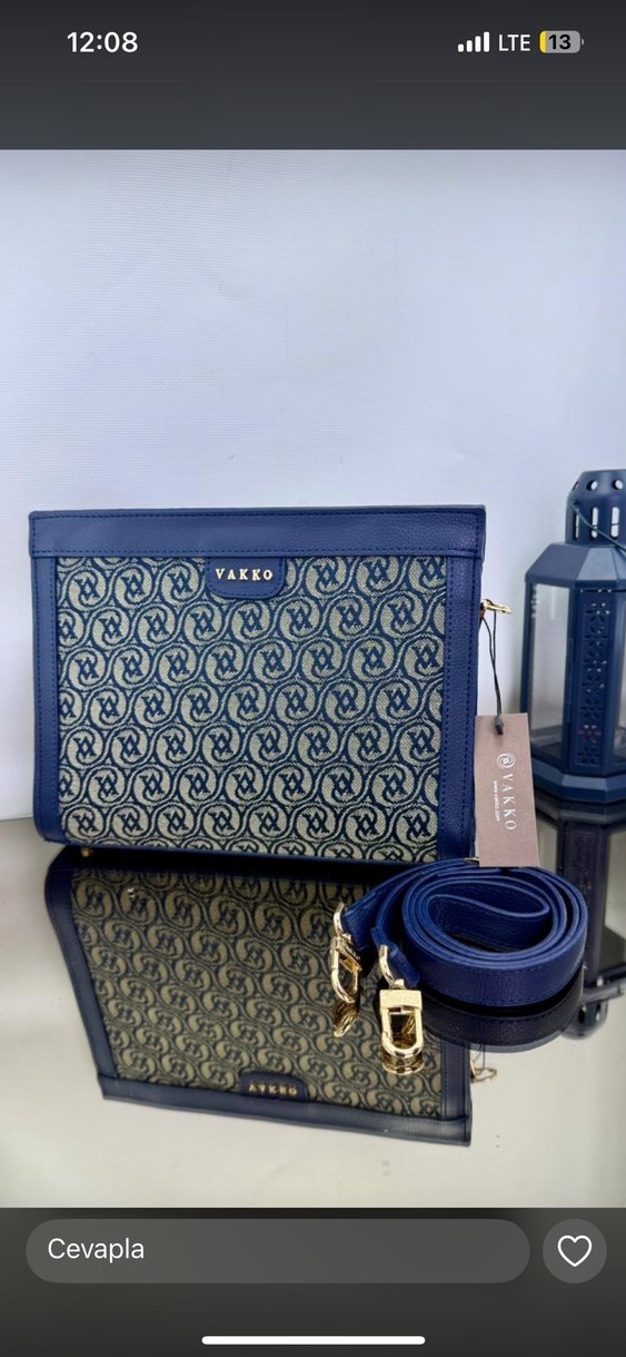 Vakko'nun koyu mavi yılan desenli, kemerli kadın çantası, modern klasik stilde ve iş hayatına uygun şık bir tasarıma sahiptir.