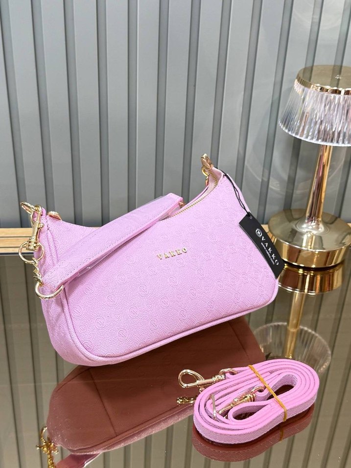Pastel pembe deri malzemeden yapılmış, tokalı ve desen içermeyen modern klasik tarzda kadın çantasıdır. Günlük kullanıma uygundur. çift askılı toz torbalı