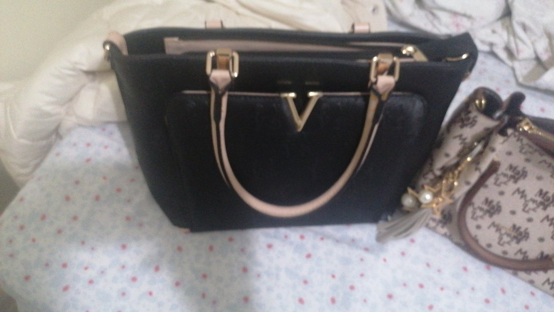 Siyah deri, tokalı saplı ve baskılı modern klasik Paris tarzı kadın çantası, dügün nişan için uygundur