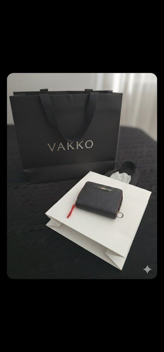 Vakko marka, fermuarlı, baskılı siyah deri kadın cüzdanı, iş ve sokak modası tarzını yansıtır, günlük kullanıma uygundur. orijinaldir kutusu mevcut değildir