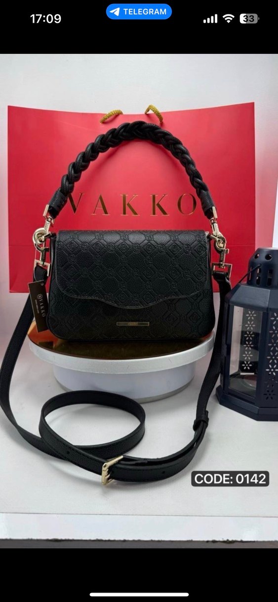 Vakko imzalı siyah deri kadın çanta, yılan derisi desenli ve tokalı örgülü saplıdır. Klasik şıklığı sokak stiline taşır, günlük kullanıma uygundur.