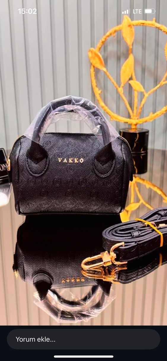 Vakko'nun siyah deri kadın çantası, baskılı desen ve tokalı detaylarla dikkat çeker. Çıkarılabilir askısı ile kullanışlıdır.
