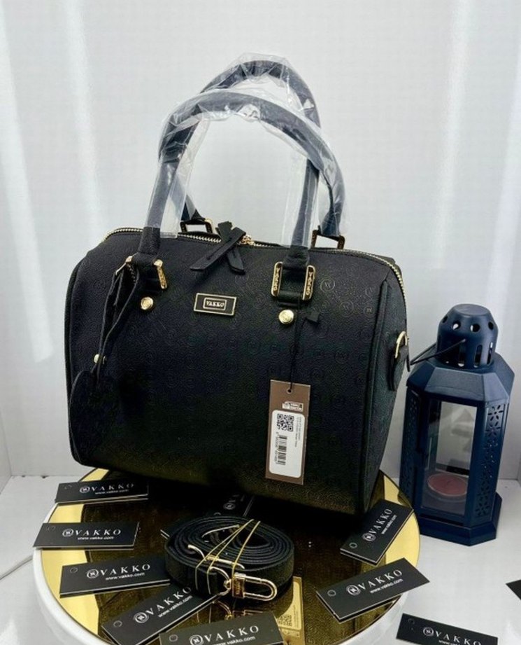 Vakko imzalı siyah deri, tokalı ve baskılı desene sahip kadın çanta çok az kullandım tertemiz duruyor isteyene atarım