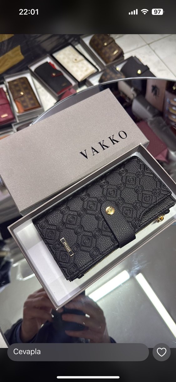 Vakko imzalı siyah deri tokalı kadın cüzdan, baskılı desene sahip olup modern klasik stil sunar. Günlük iş kullanımı için uygundur.