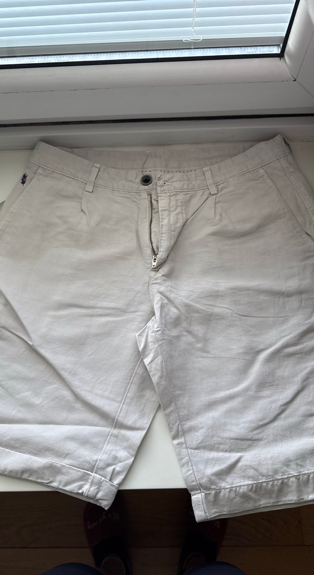 Bej renkte, düğmeli ve regular fit erkek keten pantolon. Günlük rahat kullanım için uygundur. Fermuarli ve cepli. #vakkorama #vakkoramaşort #bermudasort #ketenșort 45cm bel 50cm boy