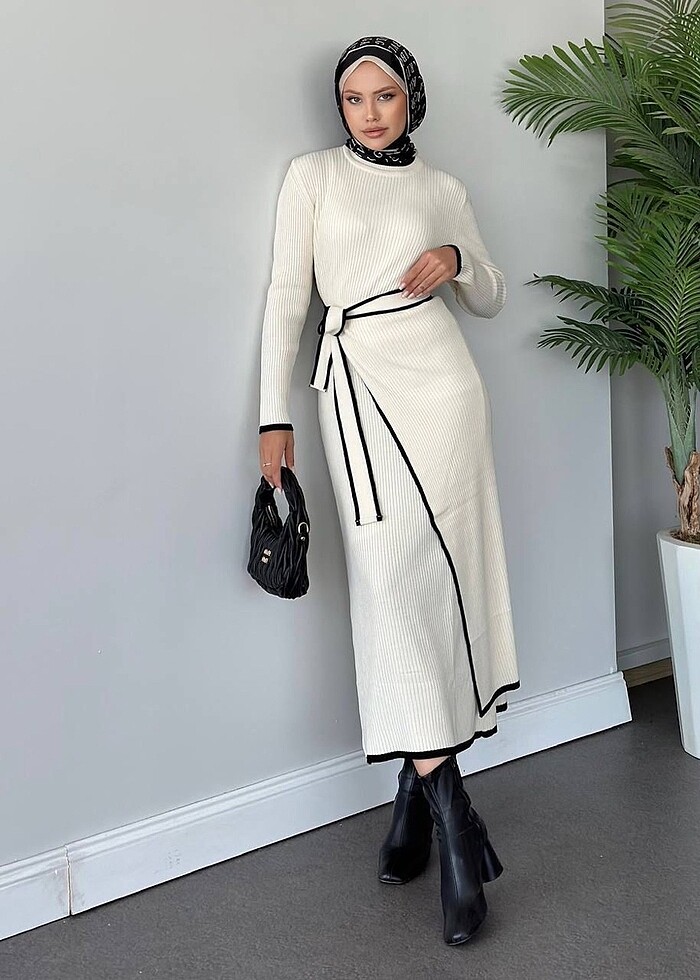 Bağlamalı ikili Triko Elbise