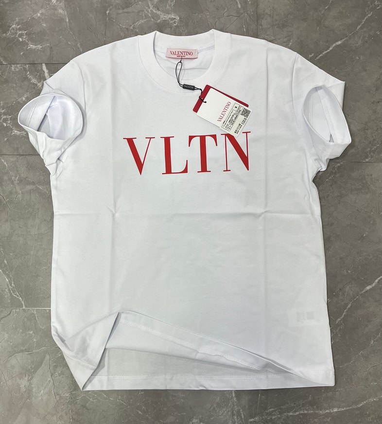 Valentino beyaz erkek tişört, pamuklu kumaştan, kısa kollu ve yuvarlak yakalıdır. Kırmızı VLTN baskı ve cırt cırt detay içerir, rahat kesimlidir.