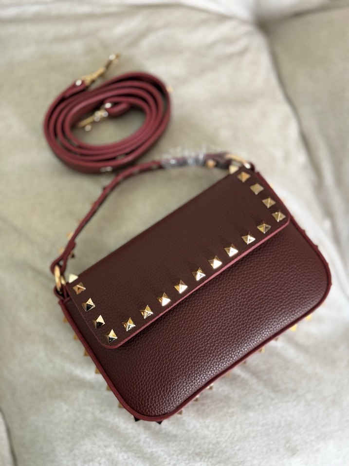 Valentino Bordo Deri Perçinli Kadın Çanta