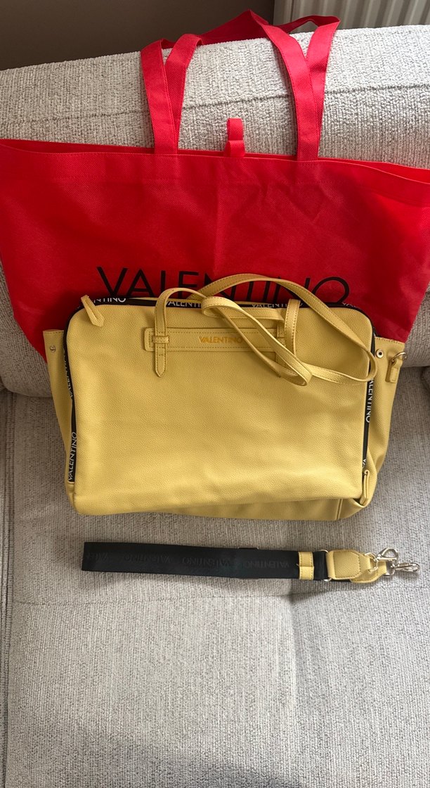 Sarı Valentino deri kadın çanta, fermuarlı ve baskılı detaylarla Paris sokak modasını yansıtır. Parlak yüzeyi ve şık tasarımıyla günlük kullanım için uygundur. Bilgisayar çantası Omuz çantası olarak kullanılabilir Orijinal