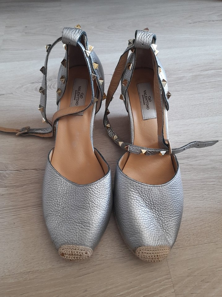 Valentino Gri Deri Yılan Desenli Kadın Dolgu Topuklu Espadril