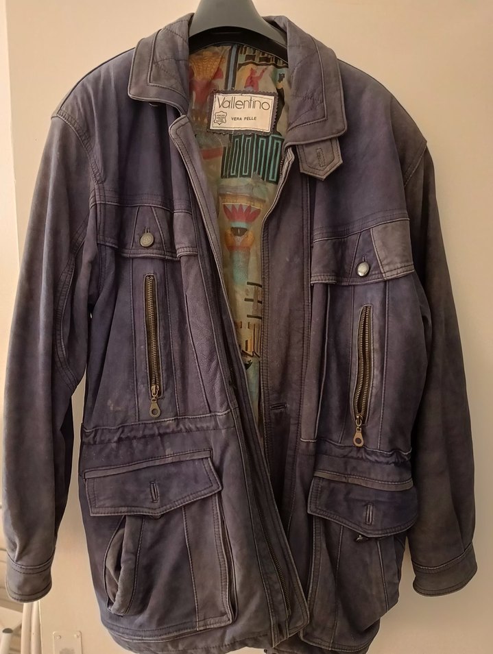 Orijinal Valentino marka, Vera Pelle (hakiki deri) erkek mont. 90’lar – erken 2000’ler dönemine ait vintage designer bir parçadır. • Kalın ve kaliteli hakiki deri • Orijinal desenli astar • Metal fermuarlar • Safari / utility tarz kesim Deri yumuşaklığını korumaktadır, çatlak veya yırtık yoktur. Yaşına bağlı hafif renk patinası mevcuttur, bu durum ürüne karakter katmaktadır. Vintage, zamansız ve kaliteli deri mont arayanlar için kaçırılmayacak bir parça.