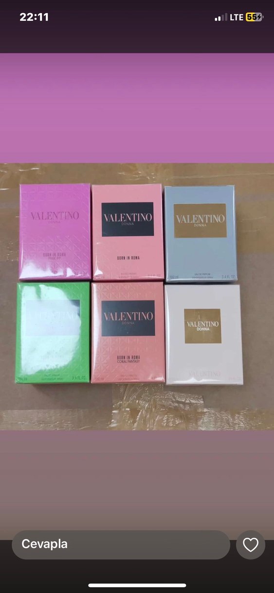 Farklı kokularda ve şık ambalajda altı adet Valentino kadın parfümü içeren set.