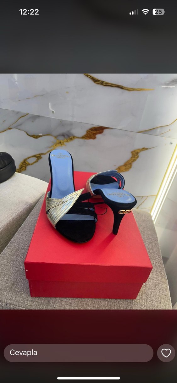 Valentino Mavi Parlak Tokalı Stiletto Kadın Topuklu