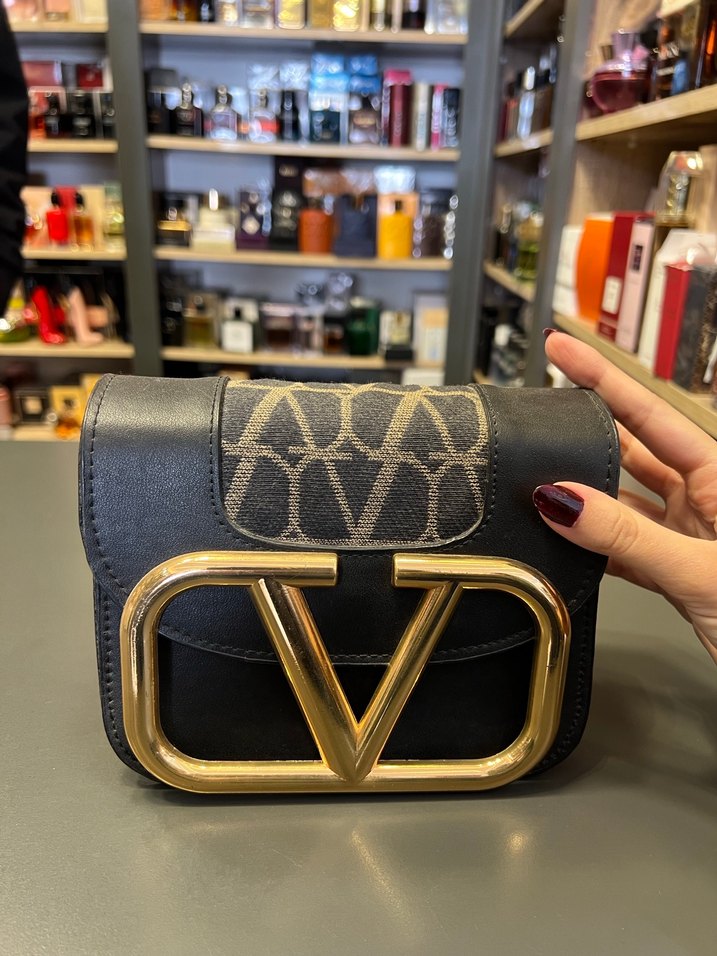 Valentino Siyah Deri Baskılı Kadın Çanta