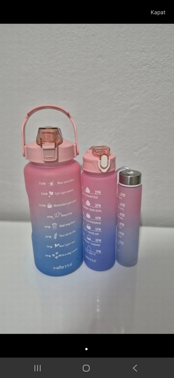 Valletta markalı, pastel pembe tonlarında, zaman çizelgeli çocuk termos şişesi. Taşıma kulpu ve güvenli açılır kapak içerir.