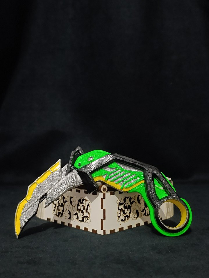 Yeşil saplı, siyah ve sarı detaylı Valorant oyunu renkli oyuncak bıçak, futuristik tasarıma sahiptir. ️