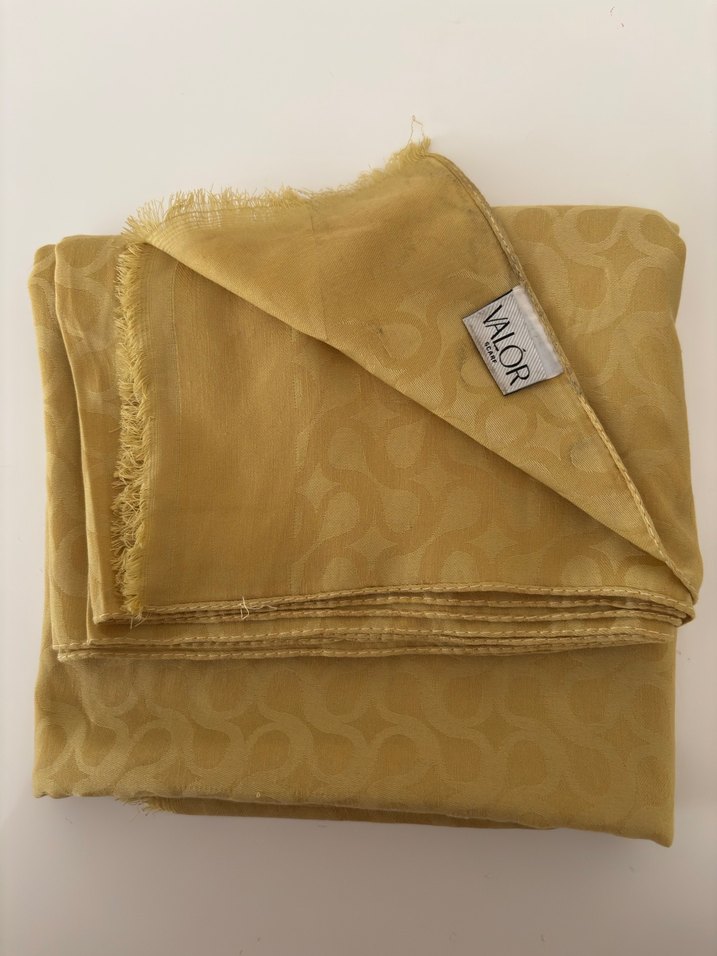 1 2 kere takıldı temizdir Kadınlar için saten, parlak sarı renkte ve drapeli tasarıma sahip vintage bohem tarzı fular. Retro ve hippie tarzlar için uygundur.