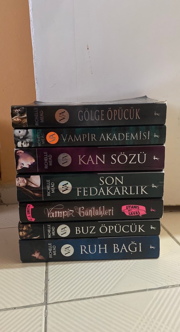 Richelle Mead'in Vampir Akademisi serisinden 7 romanlık set, Gölgə Öpücük, Vampir Akademisi, Kan Sözü, Son Fedakarlık, Vampir Günlükleri, Buz Öpücük ve Ruh Bağı kitaplarını içerir. Her kitap 110 tl, en az 3 alım yapıyoruz. Toplu olarak alırsanız hepsi 680 tl.
