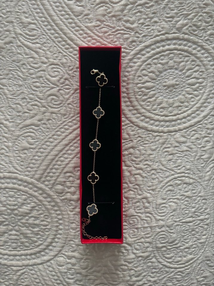 Hiç kullanılmadı. Takas ve teklife açık 14 ayar altın, 8 gram ağırlığında. Şık yonca motifli Van Cleef tasarımı. Hediye kutusuyla birlikte gönderilecektir. Kuyumcudan 32.000 TL’ye alındı, sadece kutuda saklandı.