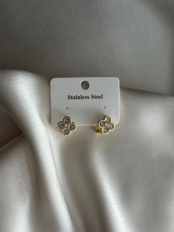 Van cleef model çift taraflı çelik küpe