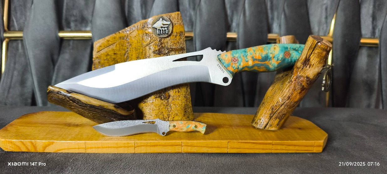 Ürün stabilize ağaç sarı liner destekli kabze. Çelik toz metal serisinin en üst düzeylerden biri olan vanax okyanus suyuna dahi pasa direnci ile bilinir. Ürün ustası Selim Akın.
