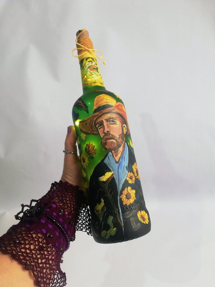 Vangogh boyama ışıklı şişe